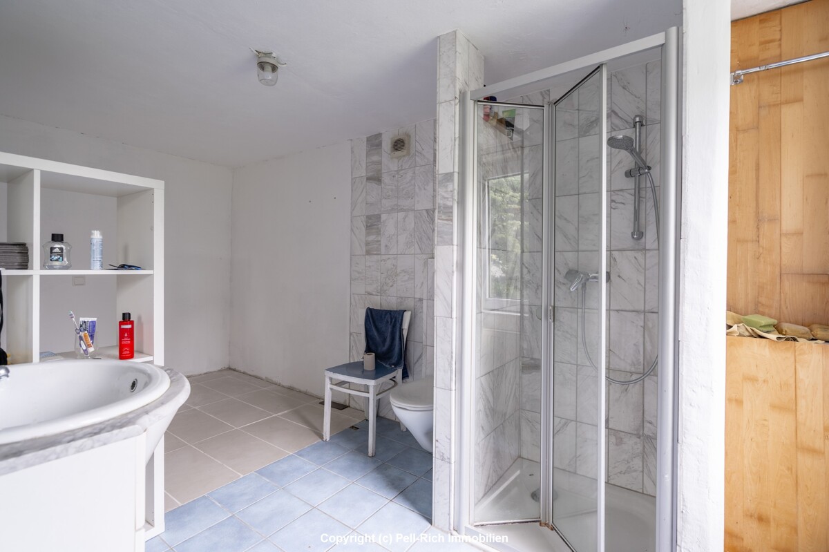 Das Objekt ist voll teilweise unterkellert und bietet vielseitige Nutzflächen für Hobby, Lager oder Hauswirtschaft. Ein Gäste-WC im Erdgeschoss sowie ein gepflegtes Tageslichtbad im Obergeschoss mit Dusche und Badewanne (beides aus dem Jahr 2000) sorgen für zeitgemäßen Komfort.