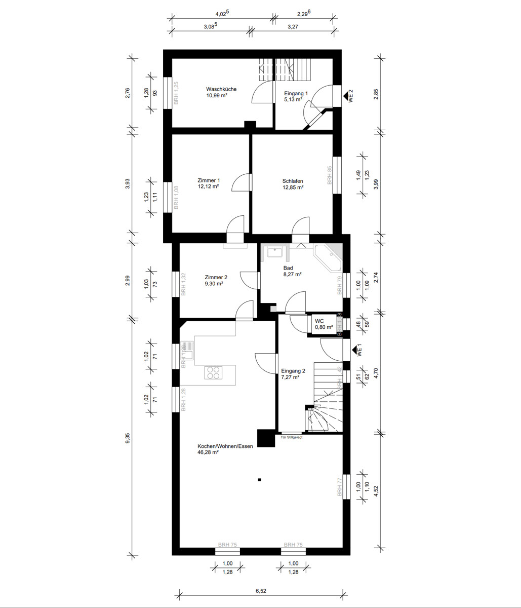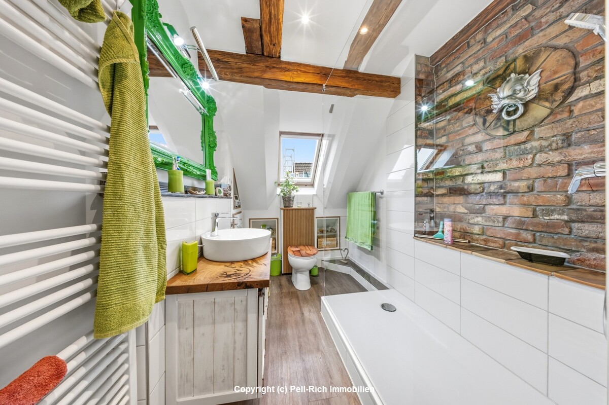 Die zweite Wohneinheit befindet sich im Hinterhaus und erstreckt sich über das Erdgeschoss und das Obergeschoss, wobei das Obergeschoss vollständig zur Einheit gehört. Das Ursprungsbaujahr liegt bei circa 1890, die Einheit wurde jedoch im Jahr 2013 umfassend um- und ausgebaut sowie saniert. Beheizt wird sie über eine Gas-Zentralheizung aus dem Jahr 2019, zusätzlich steht ein Holzofen zur Verfügung. Das Dach wurde 2008 neu gedeckt, das Badezimmer wurde erst 2025 modernisiert. Die Einheit wird derzeit noch von den Eigentümern bewohnt, diese ziehen jedoch aus, sodass auch diese Wohneinheit bei Übergabe frei wird.