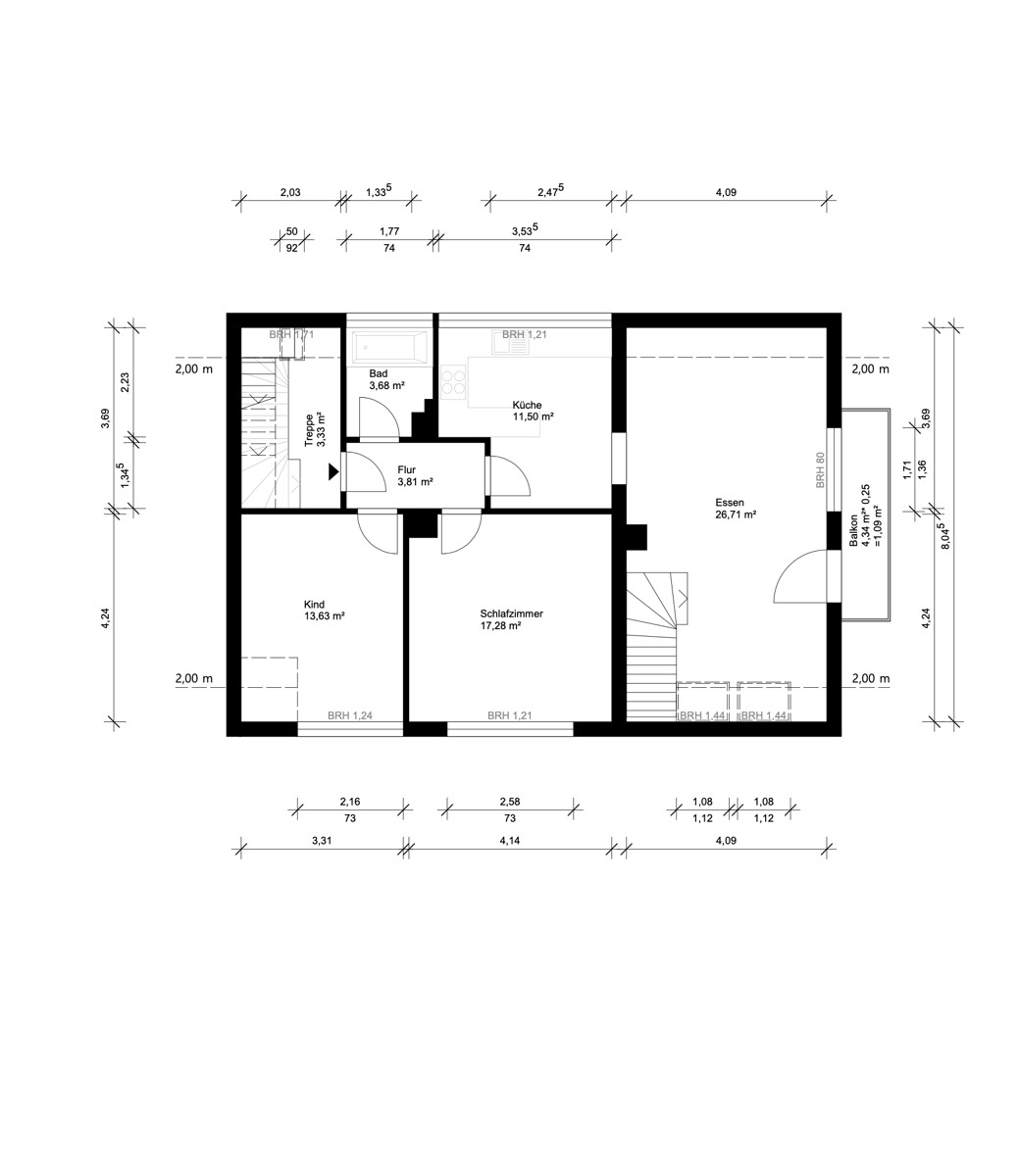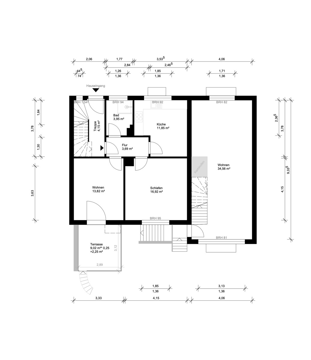- ca. 172m² Gesamtwohnfläche (nach WoFIV.) davon ca. 57m² entfallend auf die Einliegerwohnung sowie ca. 115m² entfallend auf die Hauptwohnung