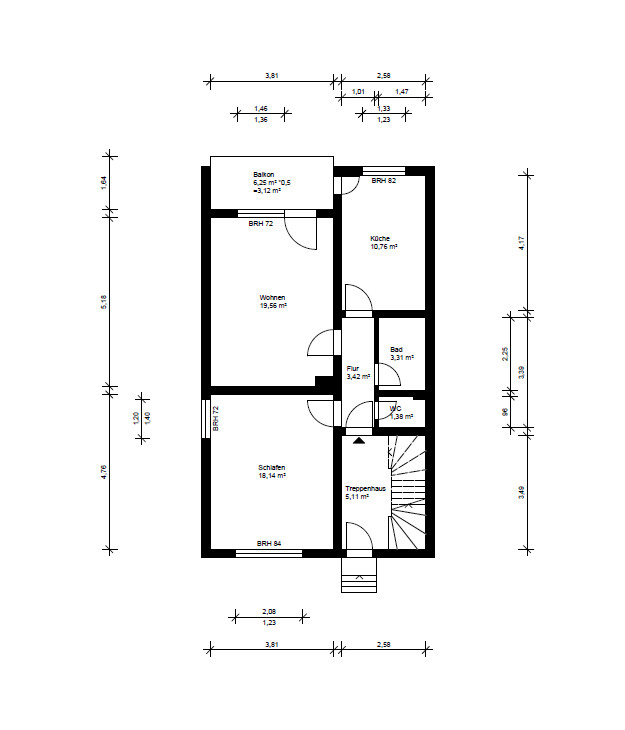 Die Wohnfläche verteilt sich insgesamt über drei Wohnungen (EG ca. 60m², OG ca. 59m² und DG ca. 50m²). Jede Einheit ist mit zwei Zimmern, einer Küche (inkl. Einbauküche) , Bad, WC und einem Balkon ausgestattet – außerdem gehört je eine Garage sowie ein Kellerabteil dazu.