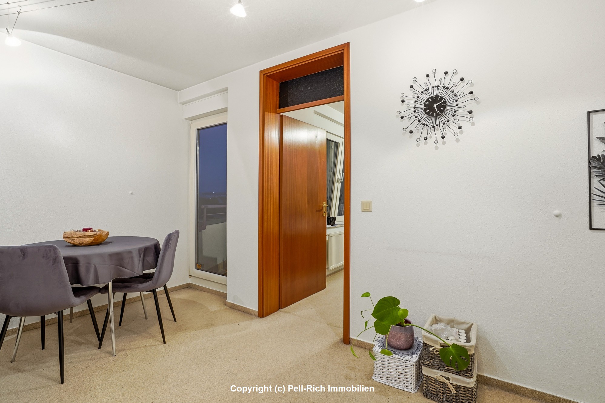 Der durchdachte Grundriss bietet einen hellen Wohn- und Essbereich sowie ein separat gelegenes Schlafzimmer. Vom Wohnbereich aus haben Sie Zugang zum Balkon, der zu entspannten Stunden im Freien einlädt. Die vorhandene Einbauküche ist praktisch ausgestattet und fügt sich harmonisch in das Wohnkonzept ein.