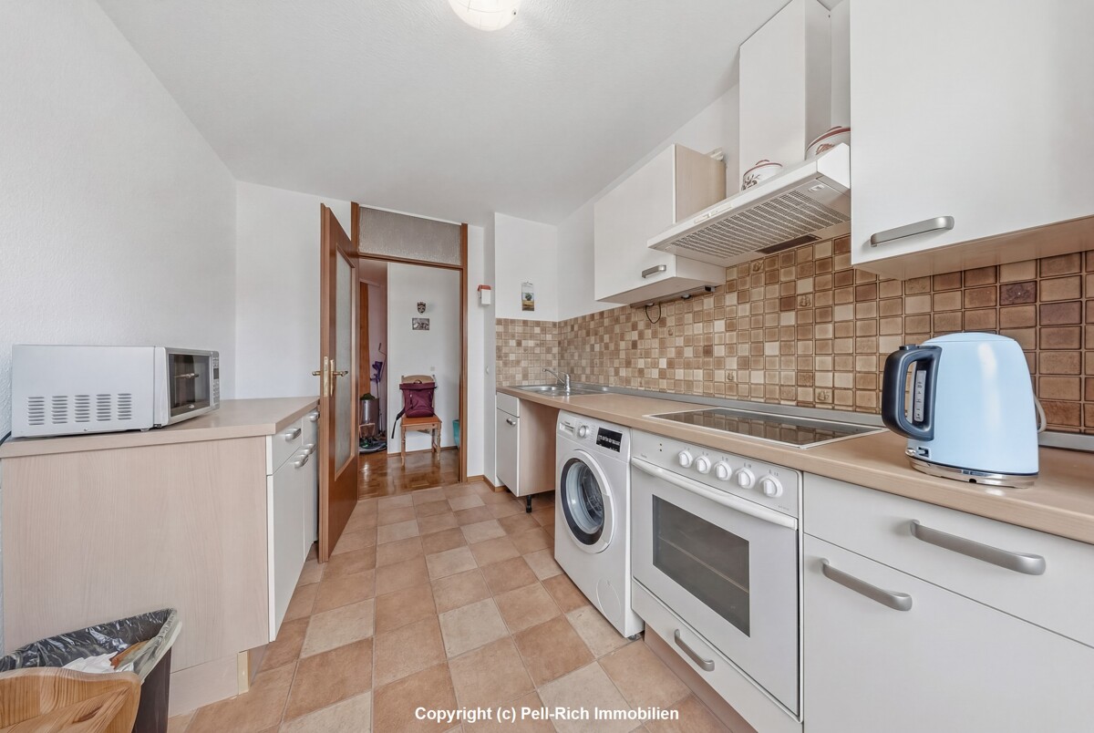 Ein Balkon lädt zum Verweilen im Freien ein und erweitert den Wohnraum nach außen. Ergänzt wird das Platzangebot durch eine praktische Abstellkammer innerhalb der Wohnung sowie ein separates Kellerabteil im Untergeschoss.