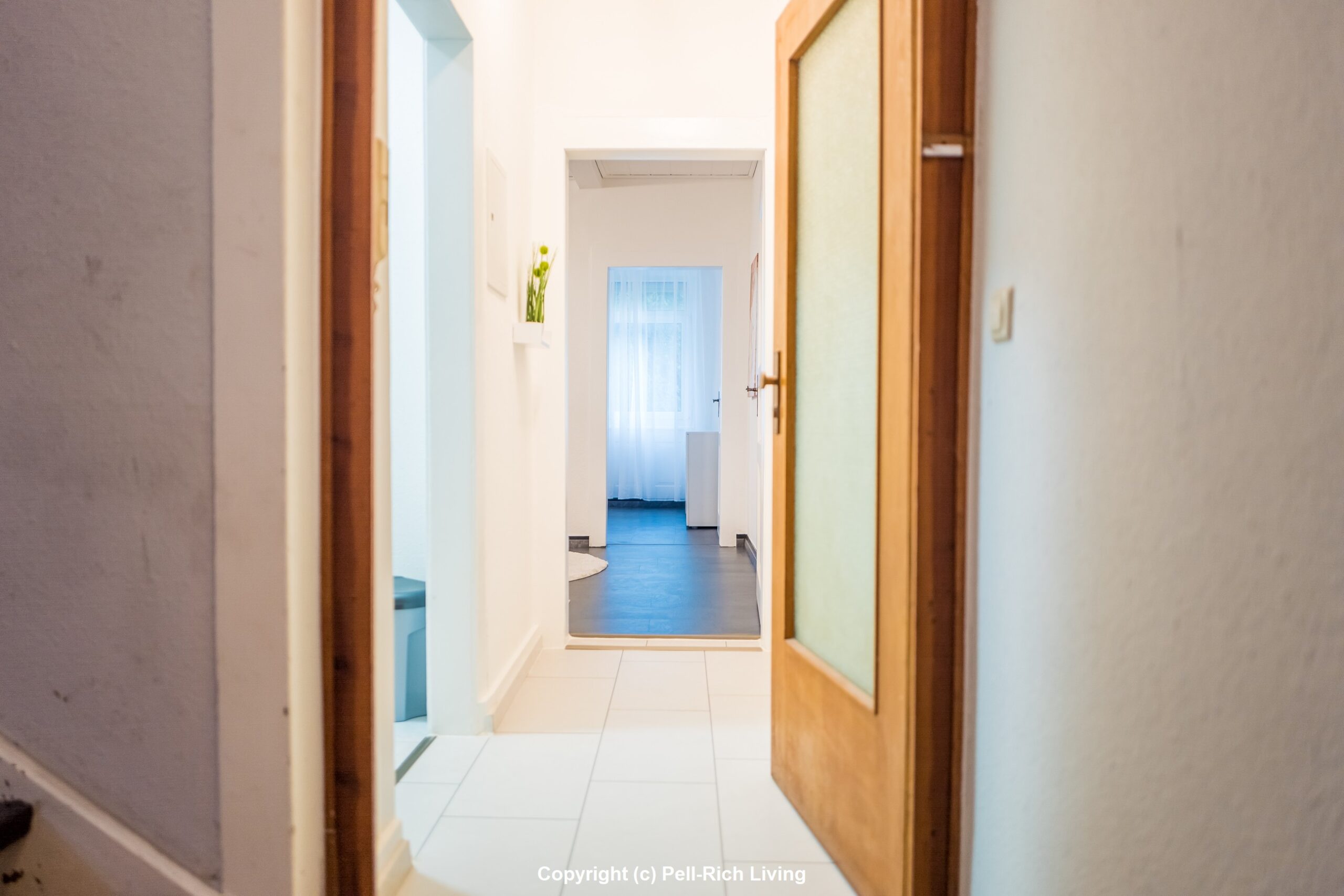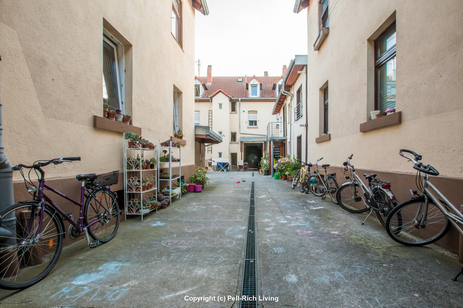 Die Wohnung befindet sich im Erdgeschoss im Hinterhaus eines Mehrfamilienhauses.